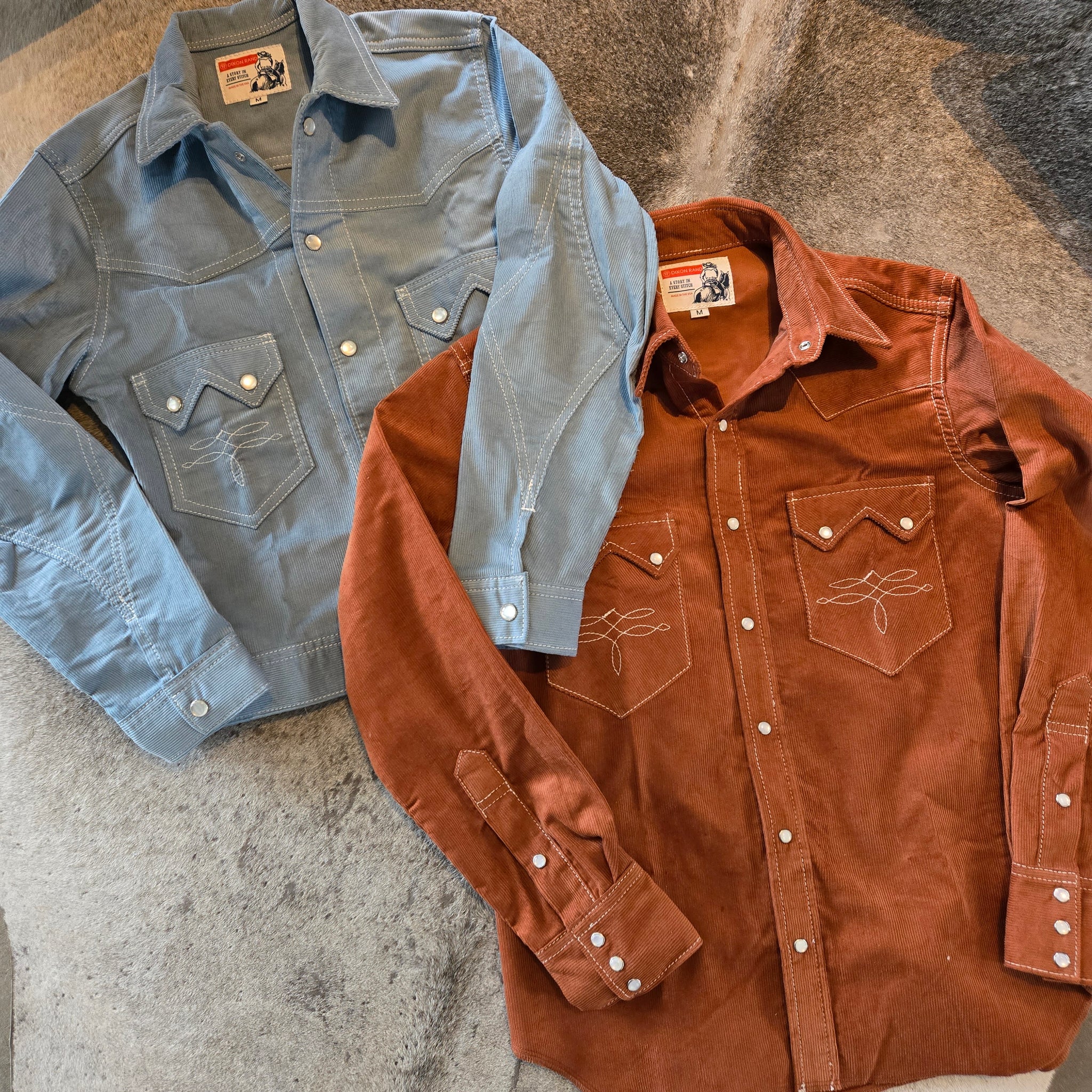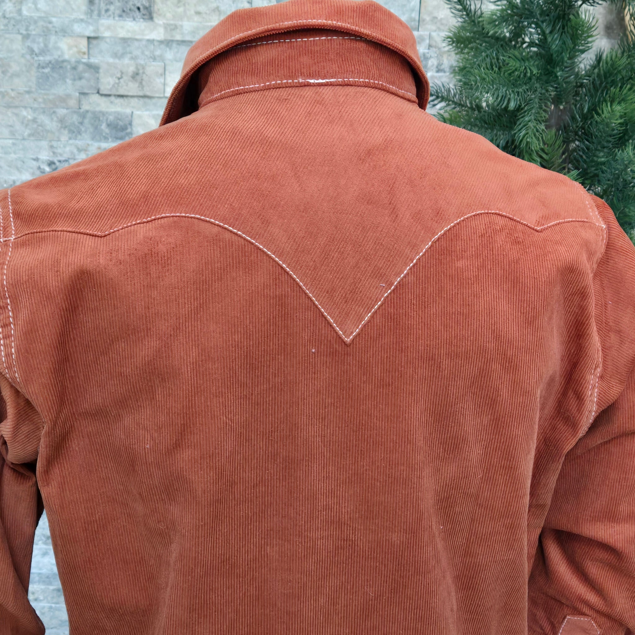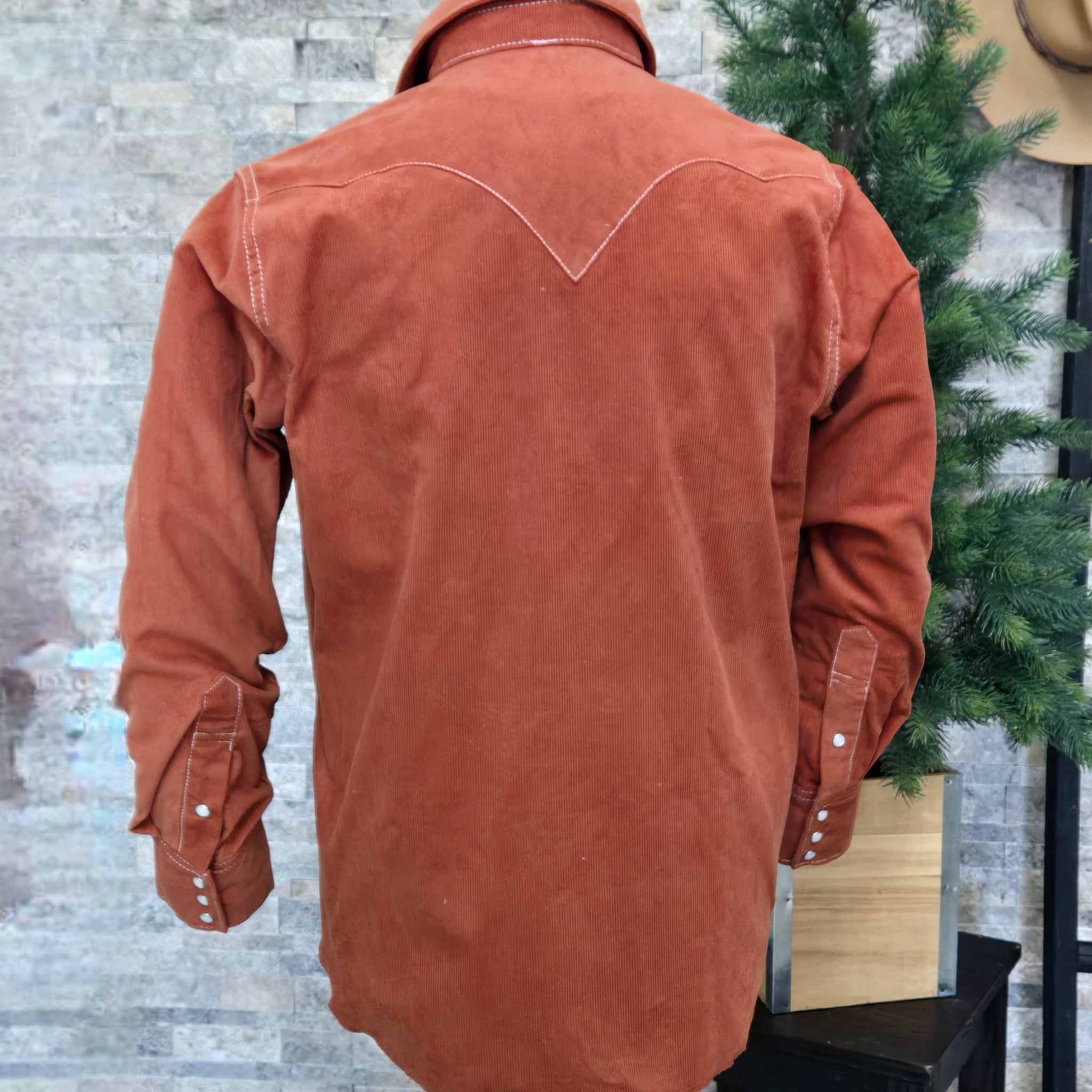 With bootstitched pockets and pearl snaps, the Highwayman is the perfect Western Shirt to add to a vintage inspired wardrobe. Based off our classic denim version, this style is crafted in a 14 wale cotton corduroy. The cinnamon color is one of our favorites that pairs perfectly with denim. Finished with a 3 point 'batman' back yoke, we've kept all the Western details you love.