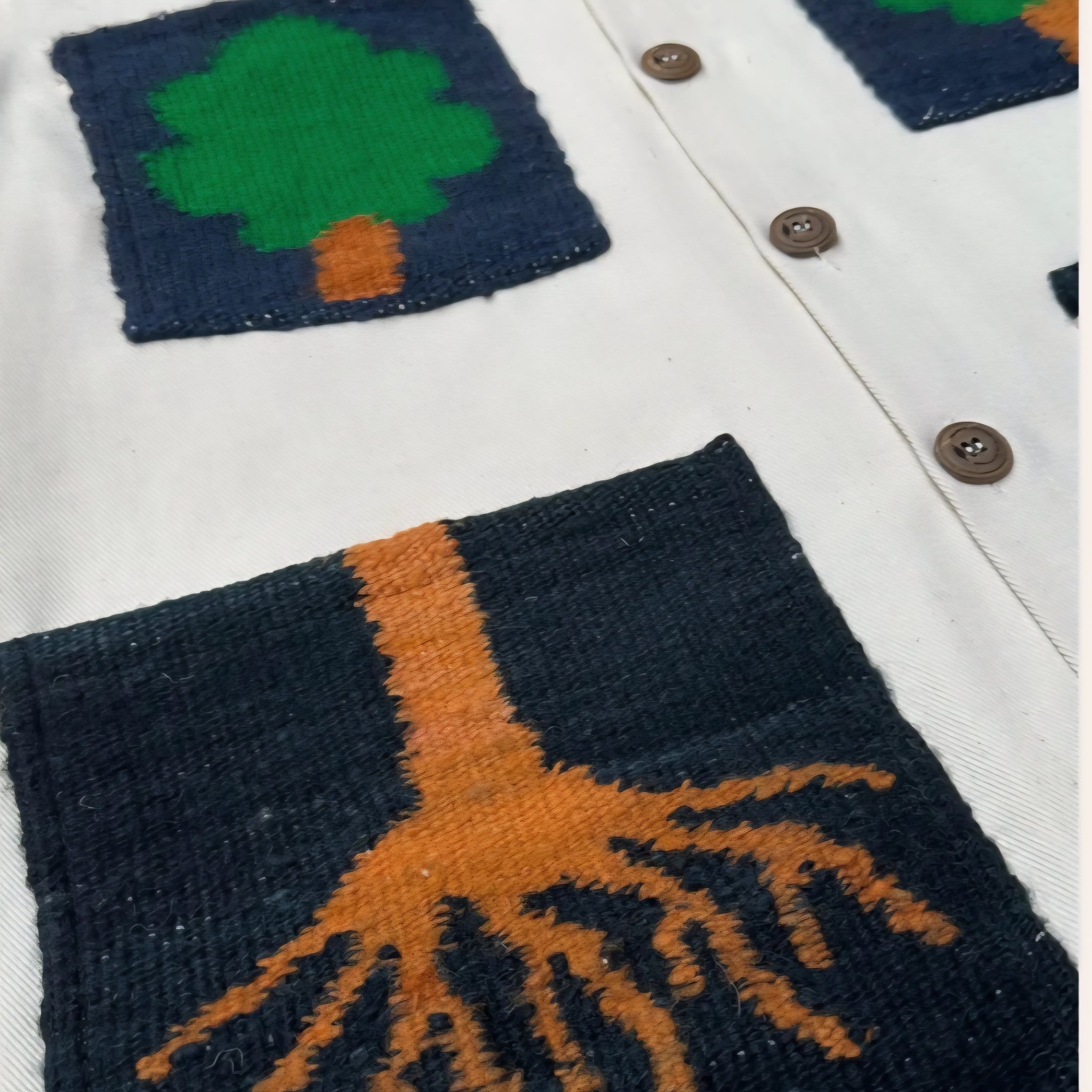We are champions of artisan crafted garments, and our Tapestry Jackets are at the top of our covetable list. Created by our friends at Fields Outfitting, these very special chore coats feature a denim woven in Argentina accented with hand woven (tapestry) pockets. This style features a tree & its roots symbolizing balance, community, and friendship.