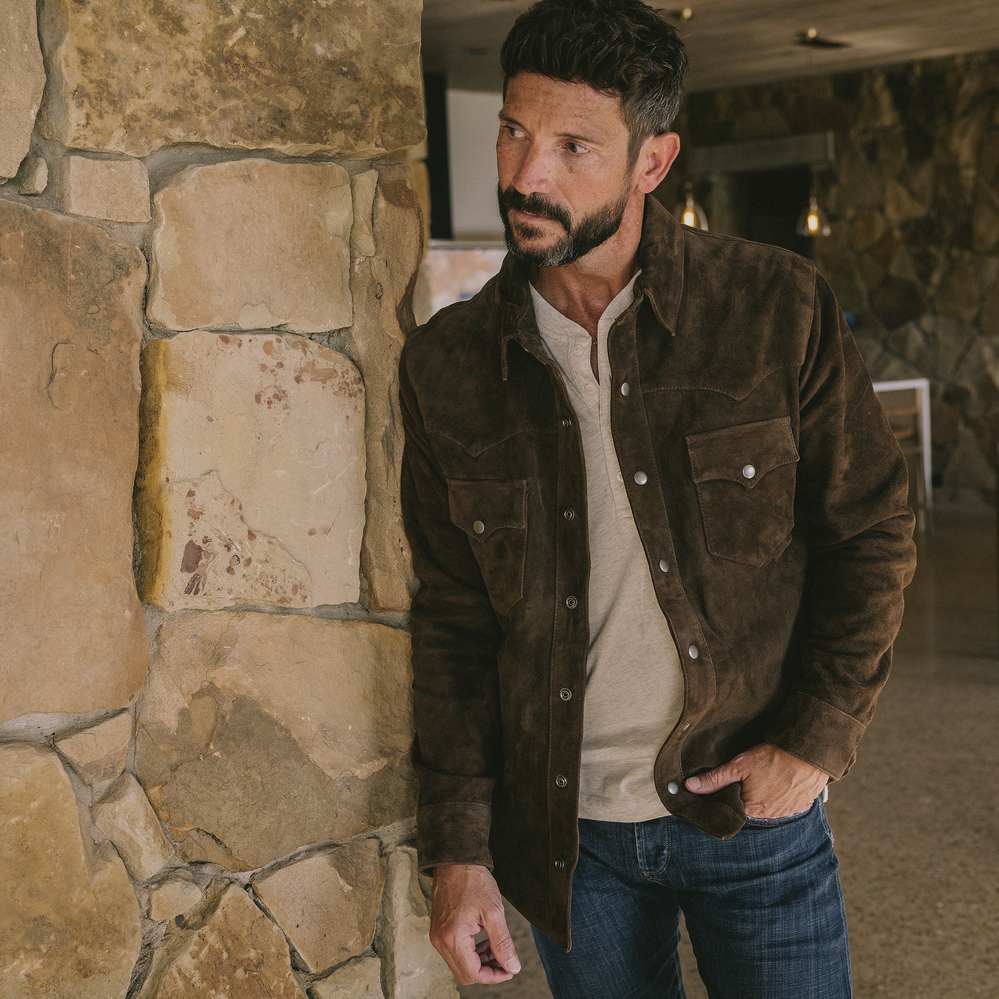 Inspired by a Vintage 60s garment, this unisex style is the definition of Fall. A collectible layering piece crafted in lambsuede.