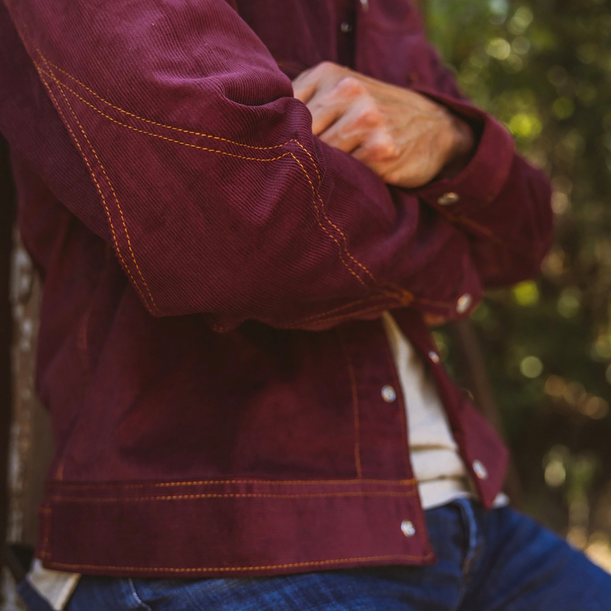 The Jack Of Diamonds in a midwale cotton corduroy has a classic cowboy vibe. The oxblood color is a subtle statement and pairs with all your indigo denim. Sawtooth pockets with oversized pearl snaps and contrast gold stitching. Form fitting but not tight crafted in the signature Dixon Rand athletic fit. Engineered Elbow Patch in a unique Diamond Shape. This style is Made to Order, please allow 3-4 weeks for delivery.