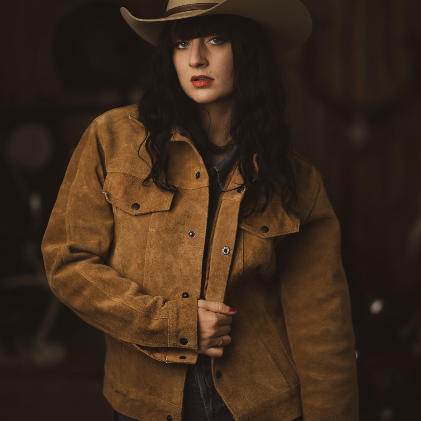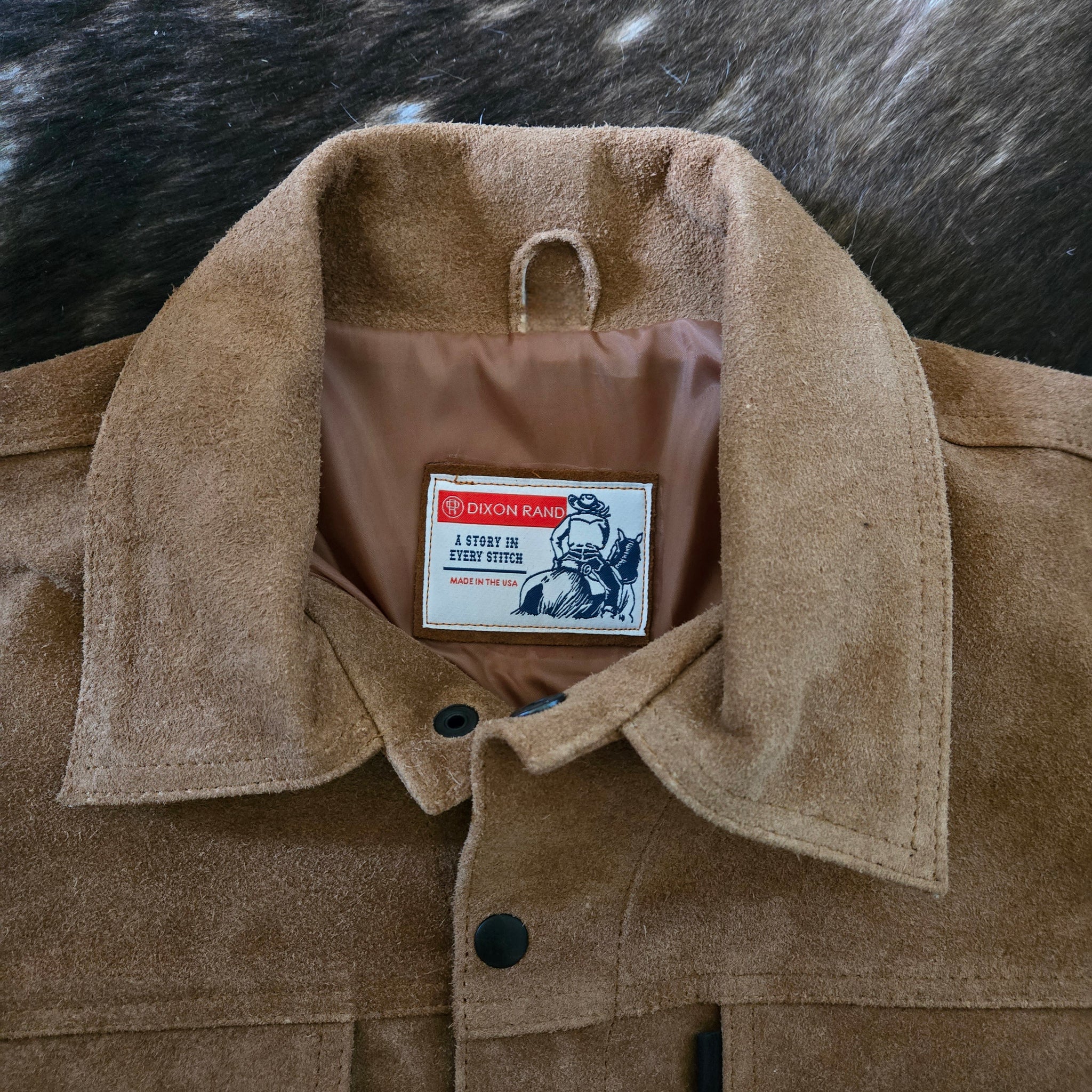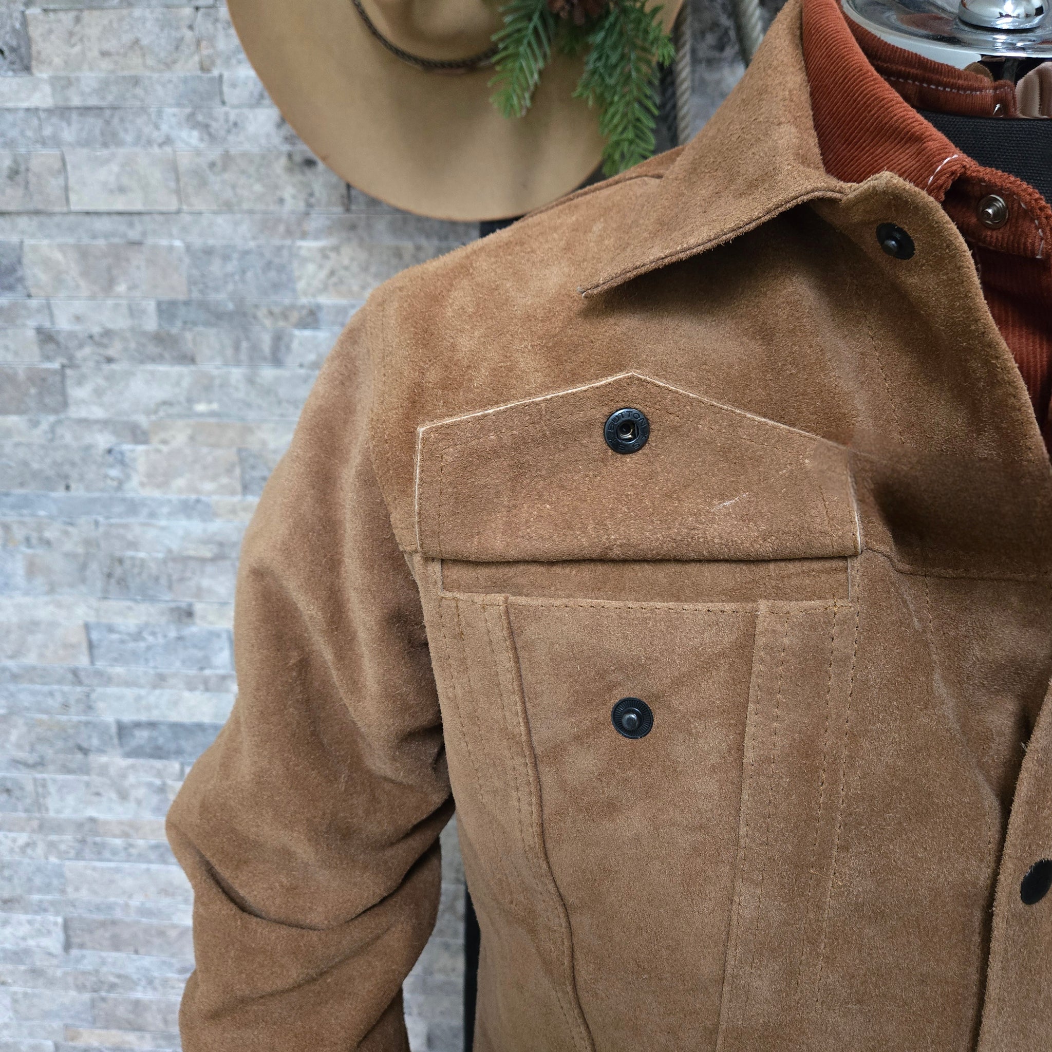 The iconic Trucker Jacket style crafted in a roughout texture suede. Perfectly crafted in a traditional whiskey color. Definitely meant for the Long Haul, this piece will break in and look better with age.