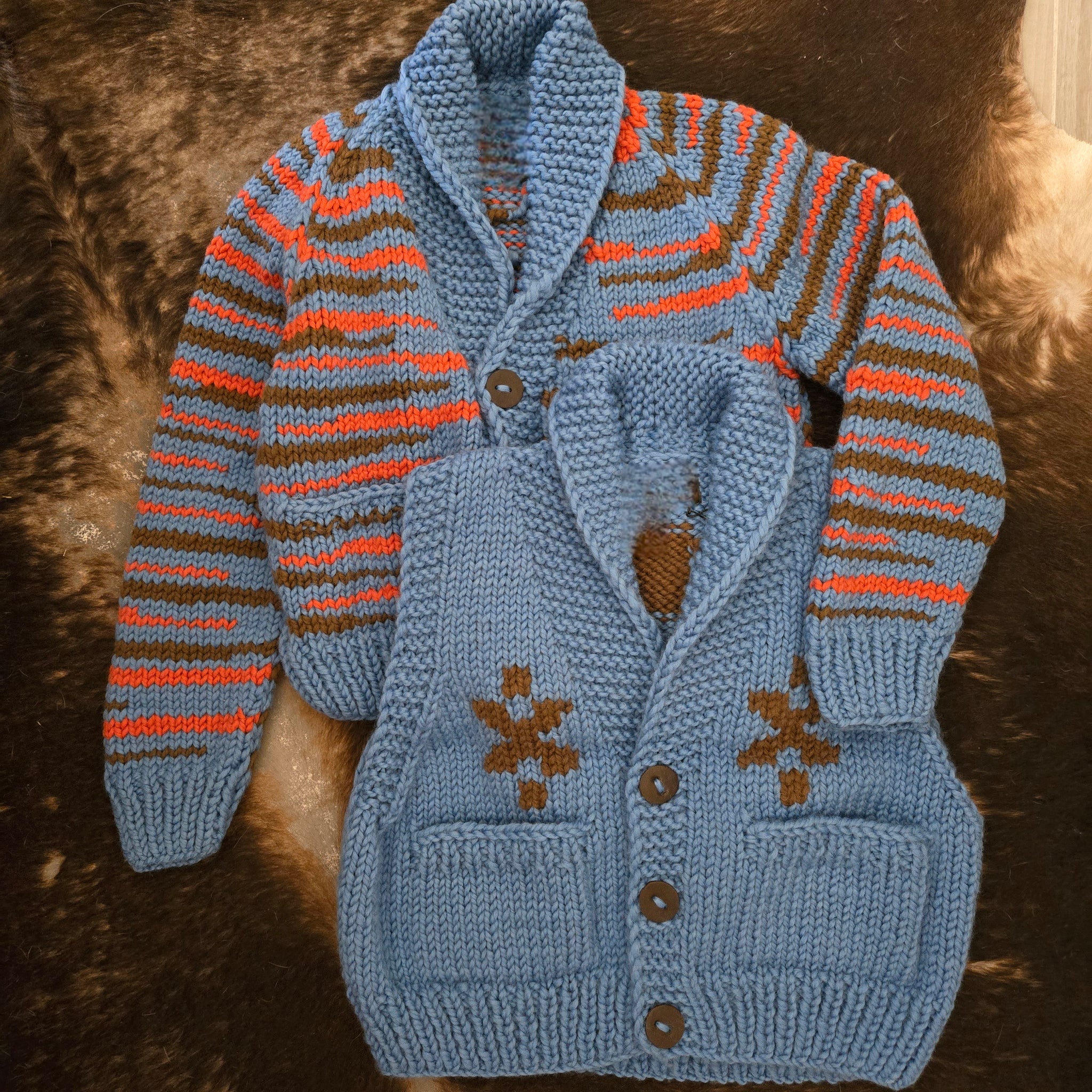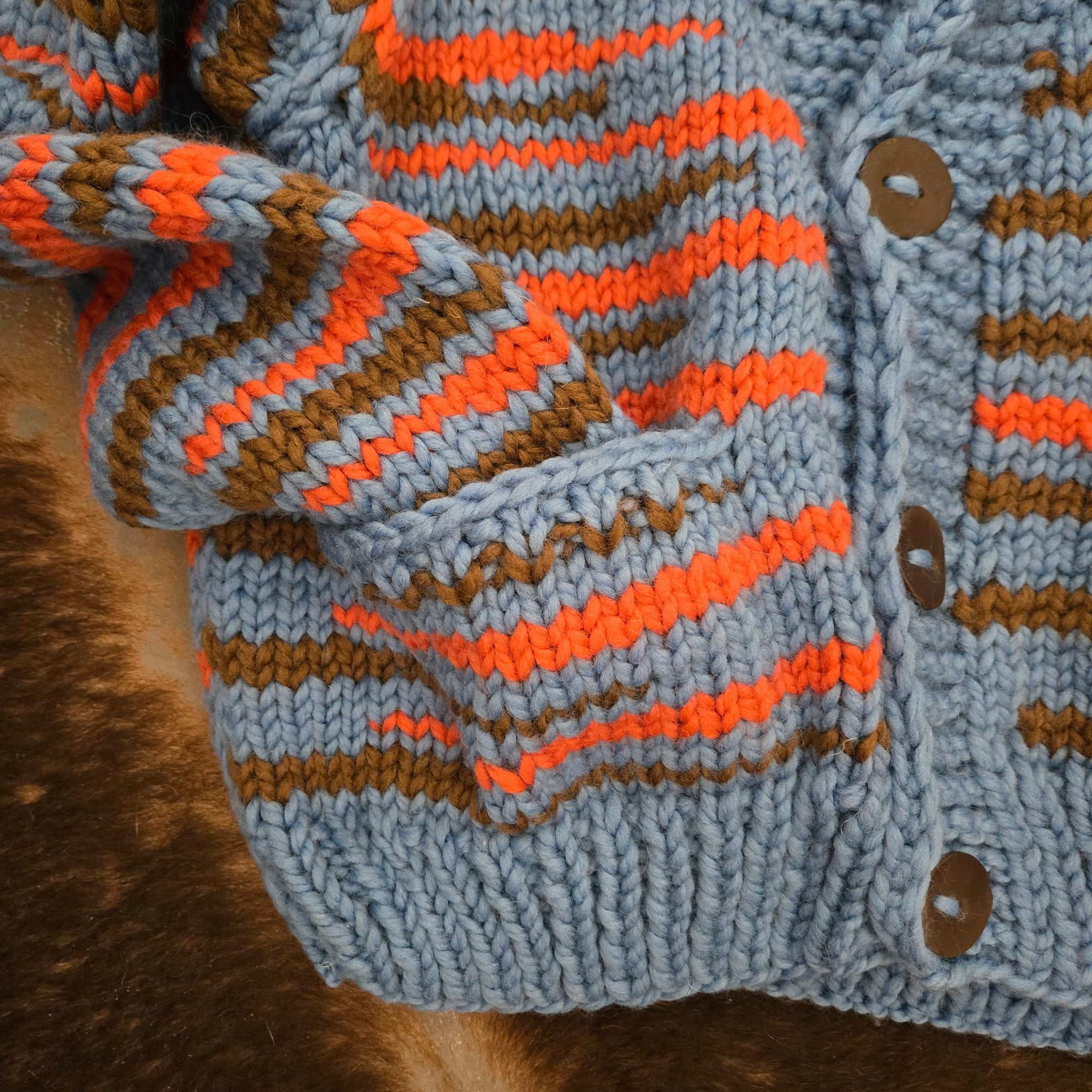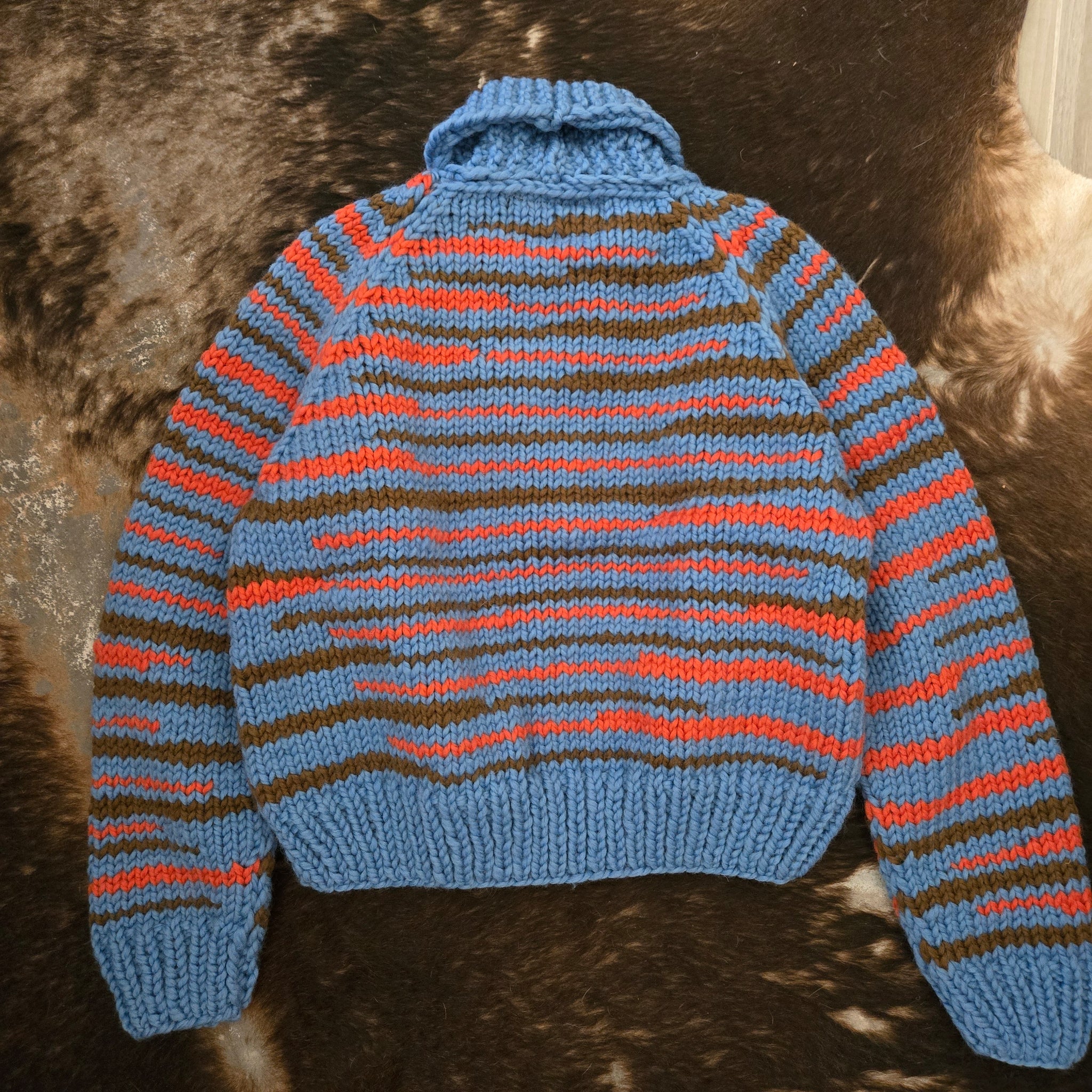 We've expanded our Jane Rand Collection with the addition of some very special knitwear styles created by GoGo knitwear. The No Waste Pullover is a chunky handknit style created with end of skein yarns. The ultimate in luxury sustainability, we love the practical versatility of this style. Chunky knit; hits at high hip.