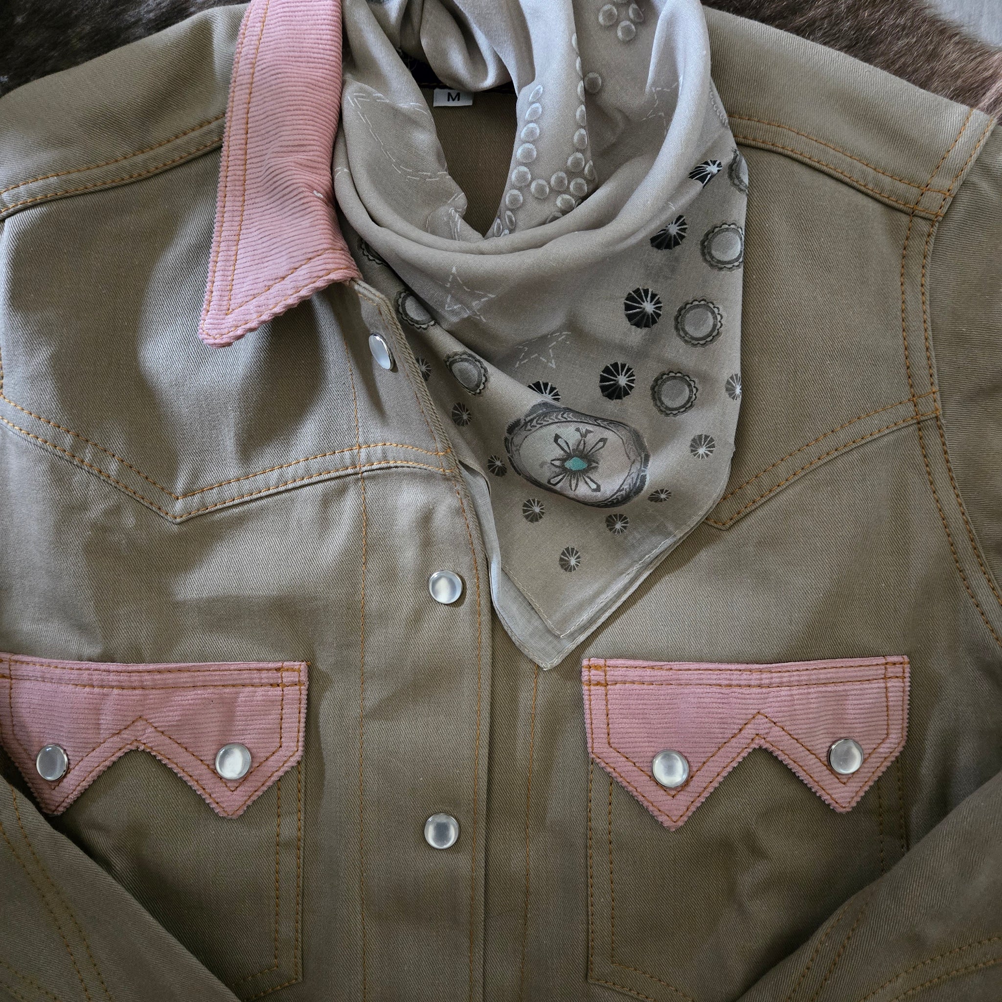 Dixon Rand's signature jacket style, designed for women. We took our bestselling Jack of Diamonds and cropped it a bit to fit a cowgirl's shape. Crafted in a khaki Japanese denim with desert rose corduroy accents.
